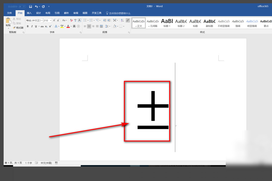 5、最后,点击选择正负号的符号选项,点击插入按钮就可以看到Word文档中出现了正负号。