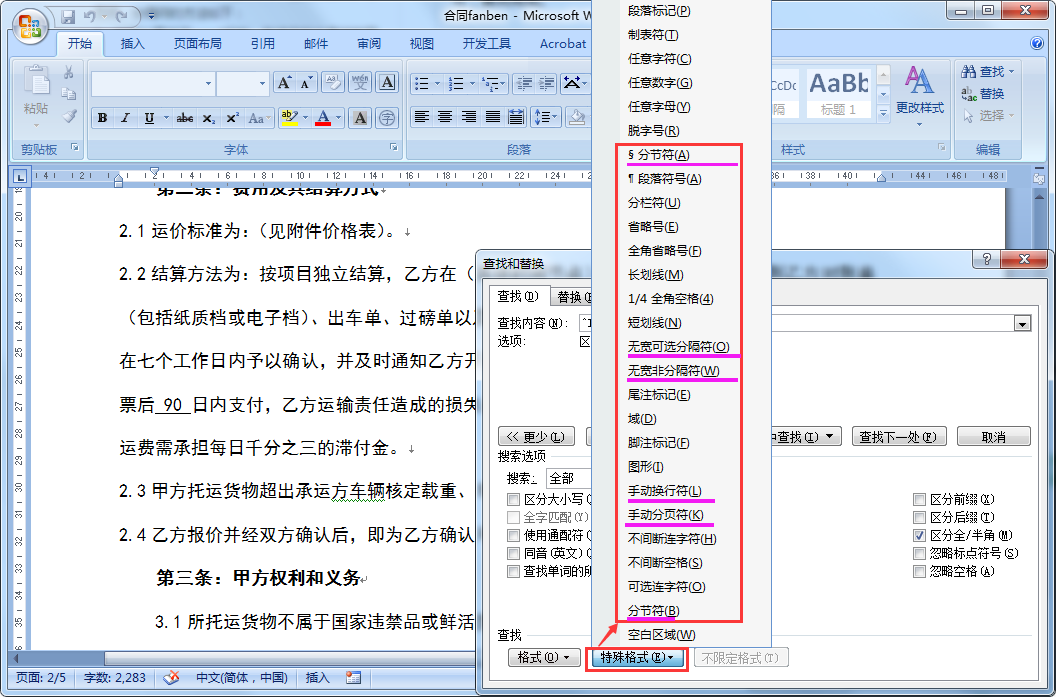 在WORD中如何查找回车字符、软回车、分页符之类的。