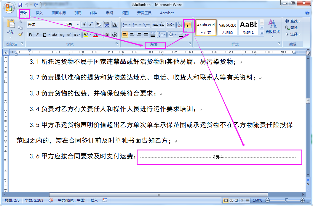 图标,即可显示文档的分页符、分节符、分隔符等,如下图所示,完成。