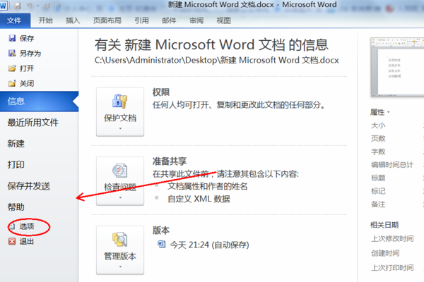2、在导航栏中,选择点击“选项”进入word选项详情设置。