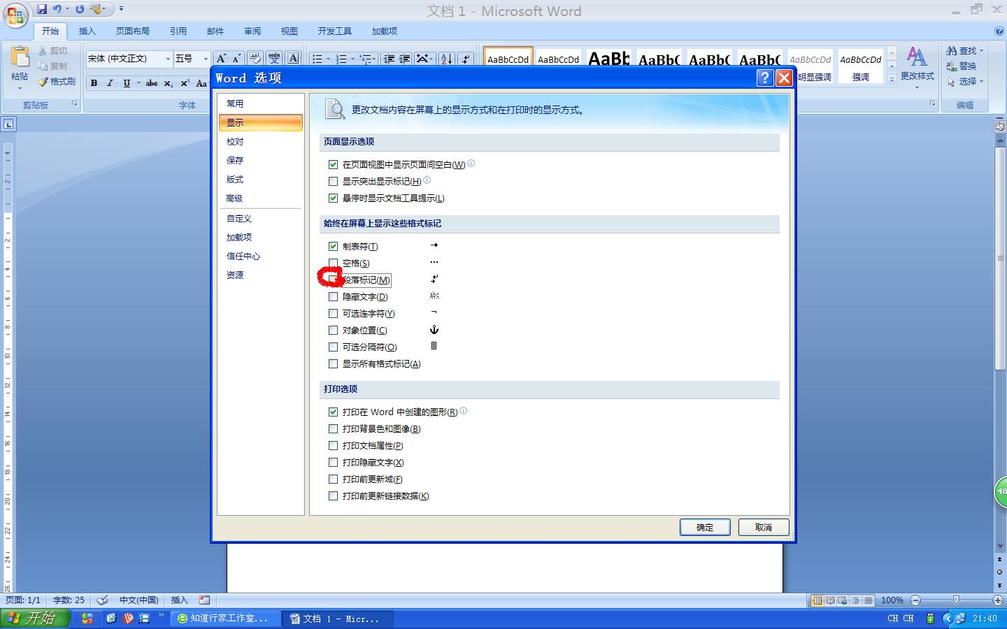 word中不显示回车符,可在word选项中做相关设置,使回车符隐藏取消显示。
