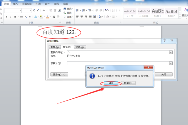 3、已完成换行符的删除,点击确定按钮,继续删除回车符的操作。