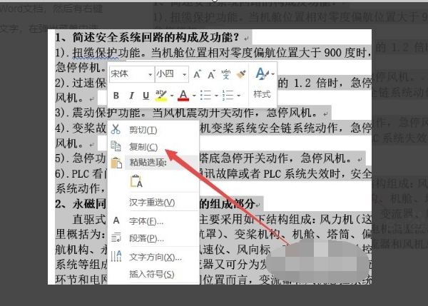1、首先打开要转换的Word文档,然后有右键点击选中的所有的文字,在弹出菜单中选择“复制”菜单项。