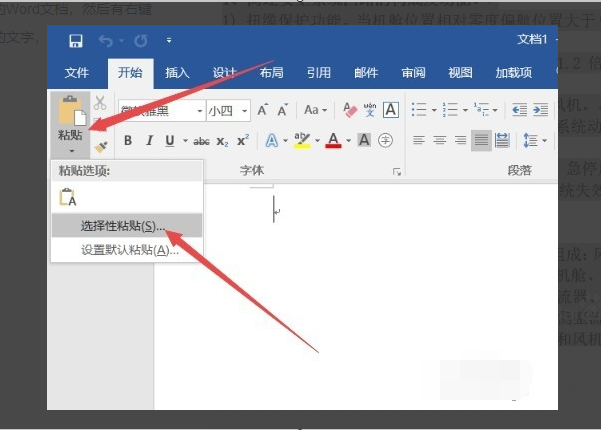 4、接下来点击开始功能区中的“粘贴”按钮,在弹出的下拉菜单中选择“选择性粘贴”菜单项。