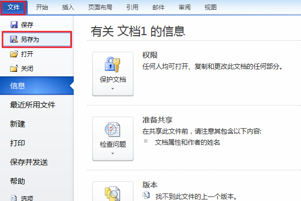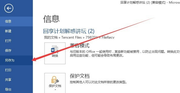 1、首先打开Word文档后,点击左上角的文件,再点击另存为。