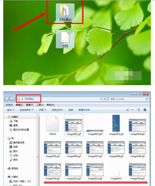 4.保存后可以在桌面上看到两个文件,一个是以.files为扩展名的文件夹,一个是网页文件。