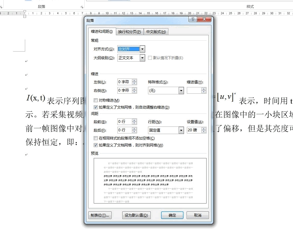 设置之后,单击”确定按钮“,这时回到word编辑窗体中,我们可以看到段落中的公式和文字已经对齐了。