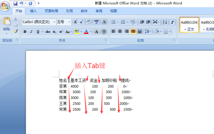 好了,到了使用tab键的时候了,我们都用过excel软件,在该软件中只要我们按下tab键就能使鼠标定到下一个表格中,相同的,在word中如果你使用tab,也是到下一个表格,不过这里需要注意的是word中会将您所书写的文字也一同跳到下一个表格中去。