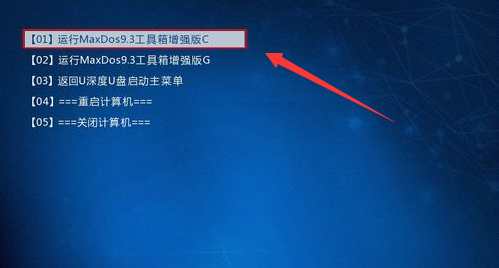 2、接着选择【01】运行MaxDos9.3工具箱增强版C,按下回车键确认,如下图所示: