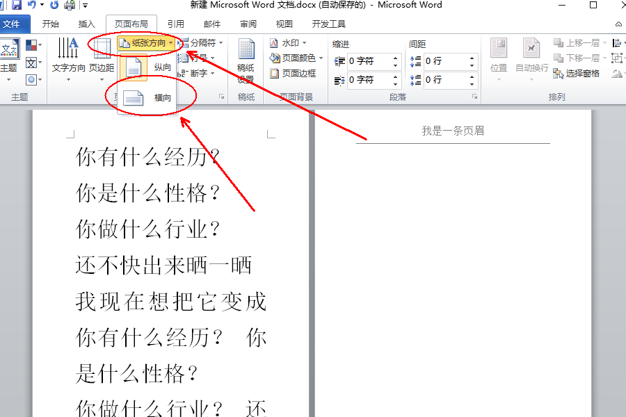 怎么把word文档 页面横过来