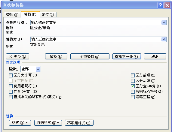 WORD怎样一次将一篇文章中的所有错字全部替换成对的