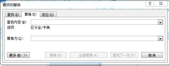 3、替换窗口被调出来,与方法一中的操作一样,进行查找和替换即可。需要更多查找限定条件,点击“更多”即可。