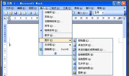 2,在“插入”的下拉菜单中选择“图片”