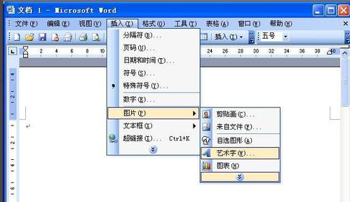 1、首先要插入一个艺术字,点击菜单栏上的插入,然后选择艺术字,如下图所示: