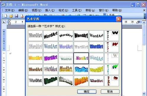 4,在出现“艺术字库”对话框后,选择一种“艺术字”样式,单击“确定”