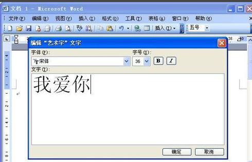 5,在出现“编辑‘艺术字’文字”的对话框后,键入您自己的内容(如:“我爱你”),单击“确定”