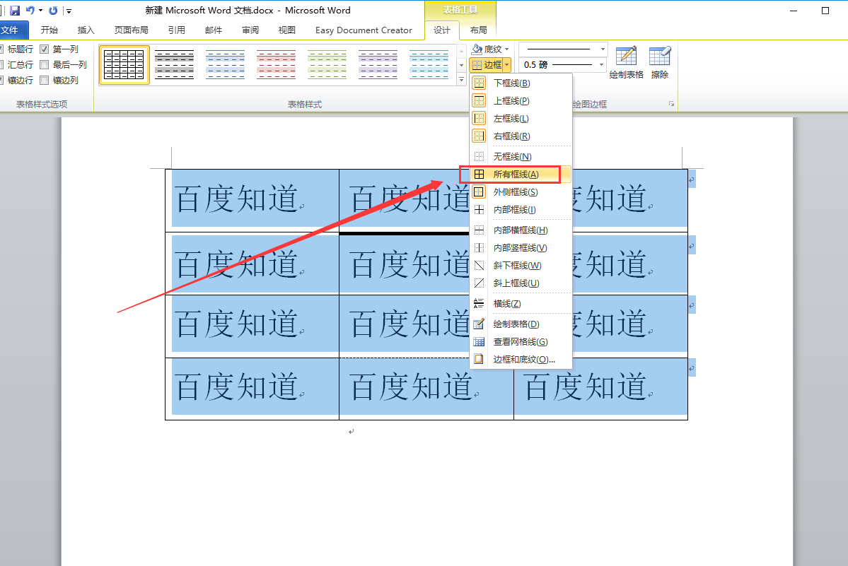 2、在弹出的选项中选择“所有边框”即可。
