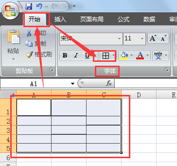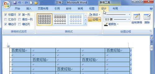 打开Word2007文档,选中需要设置边框的整个表格或特定单元格。