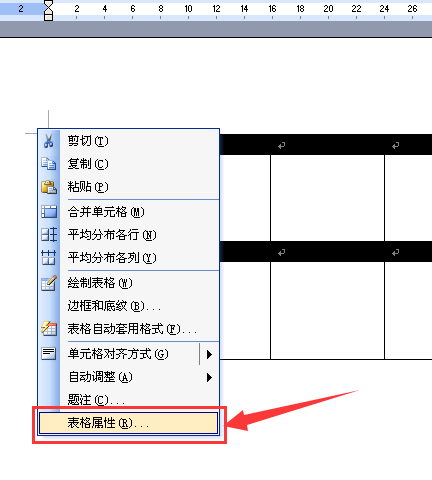 1、打开Word文档,将鼠标移动到表格的左上角,当出现一个双向十字箭头的时候,在它上面右击鼠标,在随后弹出的右键菜单中选择【表格属性】。