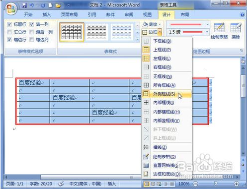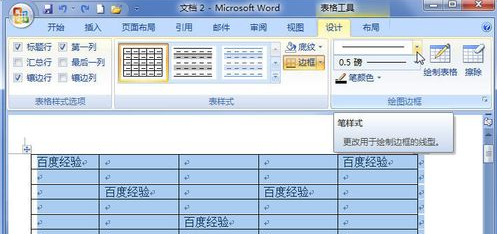 Word2007表格边框颜色和粗细怎样设置