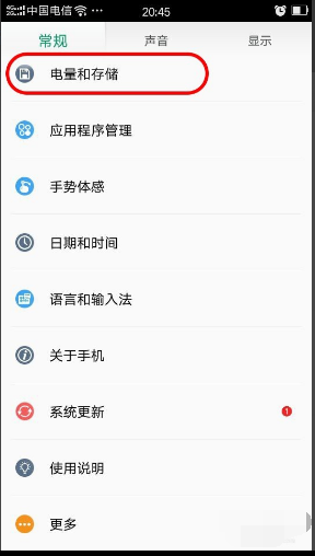 4、再次进入设置,进入电量和存储管理;