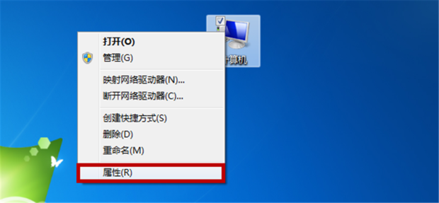 右键点击“计算机”弹出菜单栏,点击“属性”。