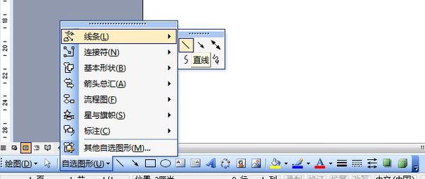 1、单击“绘图”菜单下的“自选图形”,选择“线条”菜单下的“直线”