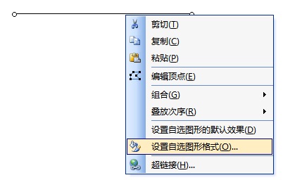 拖动线段可以改变线段在文档中的位置。在线段上击鼠标右键,利用“设置自选图形格式”可以对线段的属性进行相应的设置。