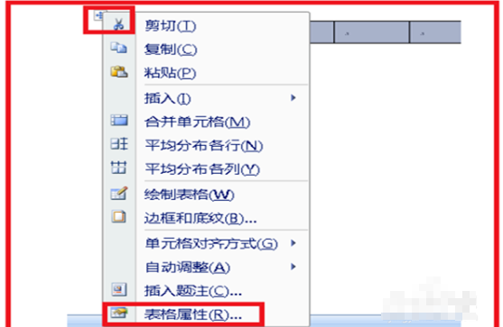 3、插入的表格出现在空白文档中,单击选中全部表格,单击右键,找到表格属性,单击表格属性。