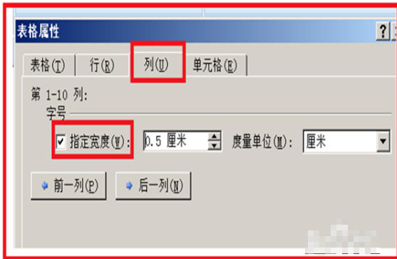 4、单击列,设置表格的宽度,看看怎么合适怎么美观输入合适的数字,单击下方的确定。