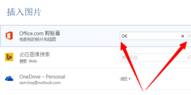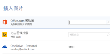 4、出来一个联机图片界面可以在这里搜索引擎剪贴画搜索bing上导入图片也可以搜索OneDrive上的图片