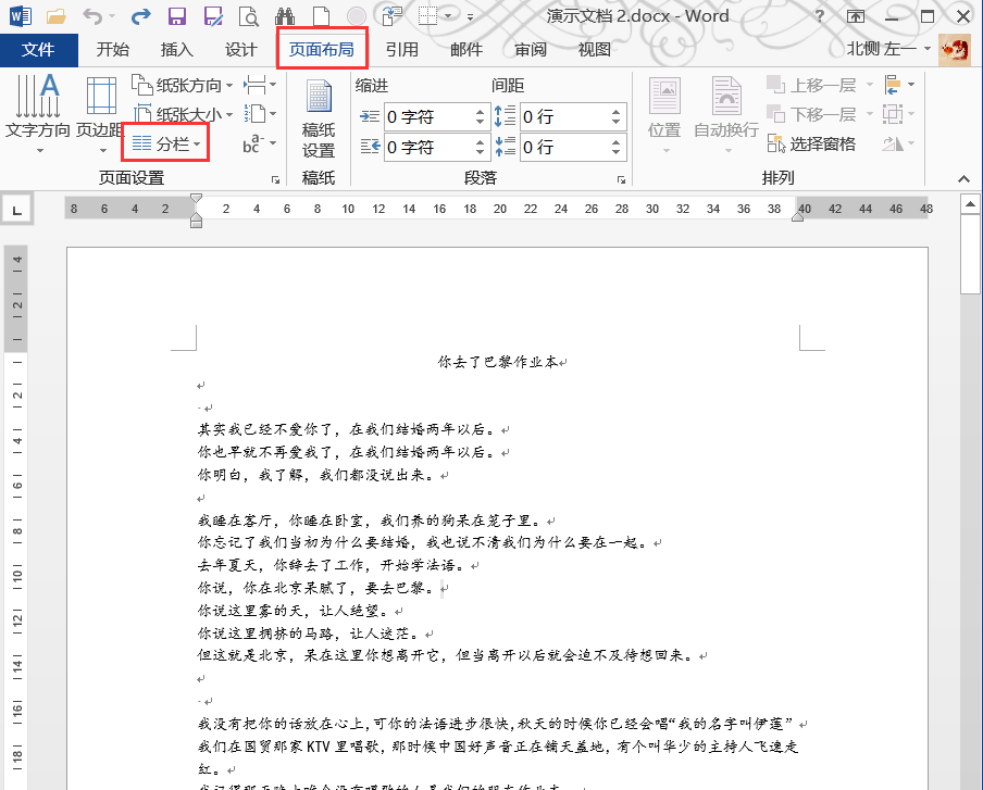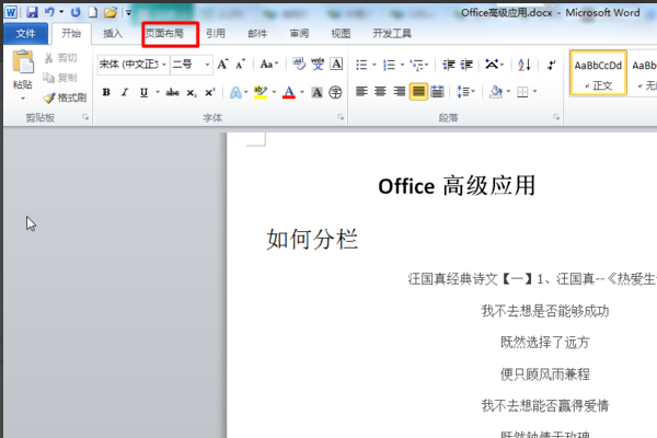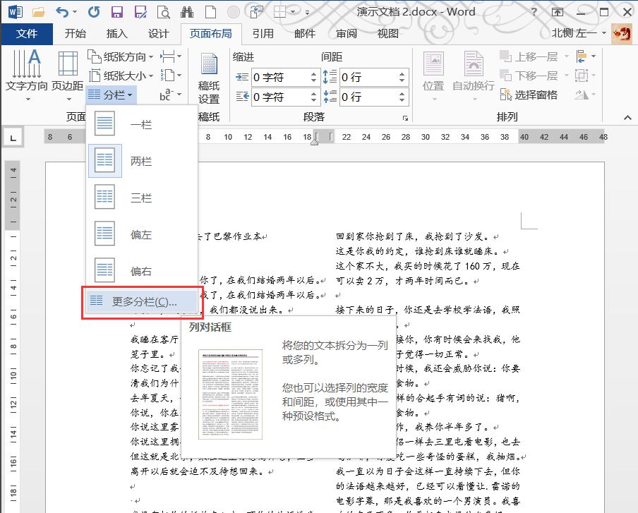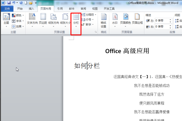 由于排版的需要,会在一张纸上写两列文字或多列文字,在页面上左右分开,这就是分栏。常用有两种方法。