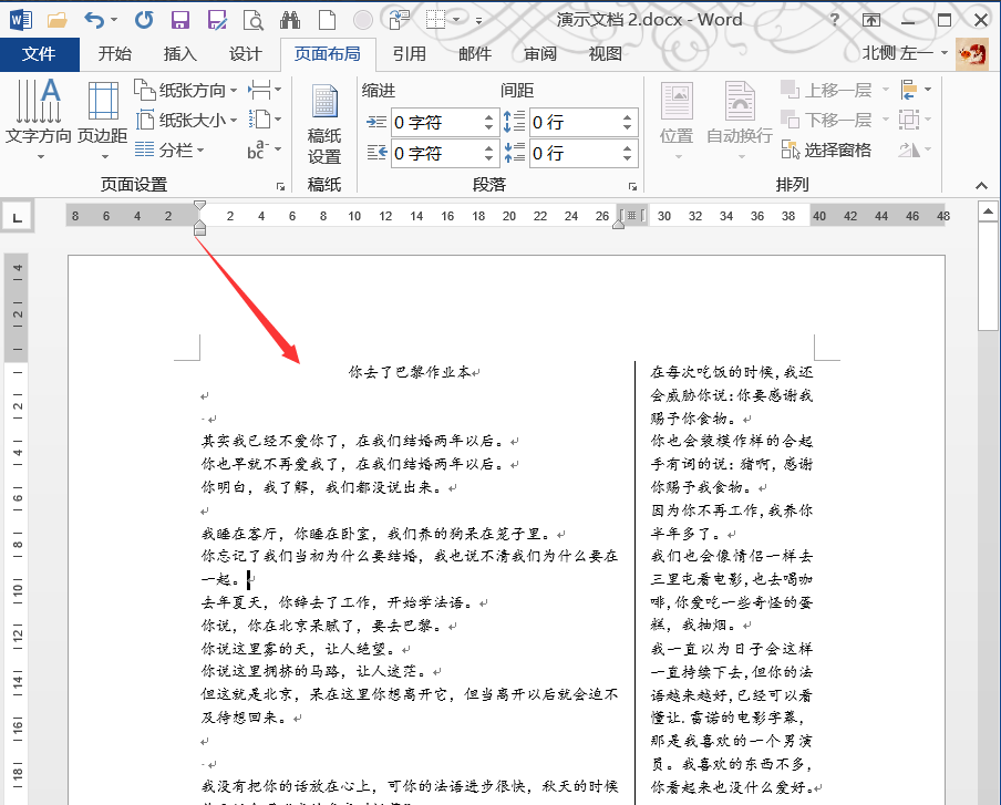 4、选中后文本就会实现相应的变化,如图所示全文分成了两栏。