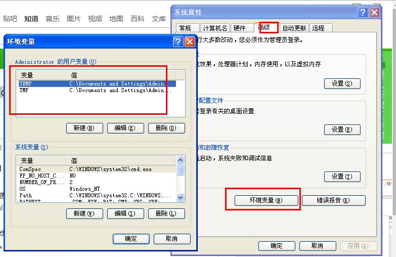 1、将用户变量改为原有设置(在电脑属性的高级属性里更改)Temp 改为 %USERPROFILE%\Local Settings\Temp,Tmp 改为 %USERPROFILE%\Local Settings\Temp,