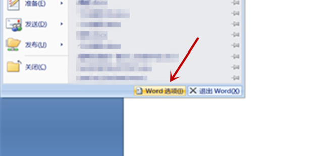 4. 点击后在出现的任务栏中选择最下方的“word选项”。