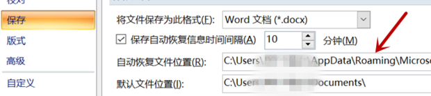 3、然后在打开的页面中点击左侧的保存选项,在打开的页面中将保存自动恢复信息时间间隔 前面的勾勾上,然后根据需要设置时间间隔,如 设置为最小的 1分钟。