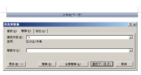 方法2:查找替换法。打开查找和替换,切换到替换,在查找内容中输入^b(注意:必须是英文小写),点替换。
