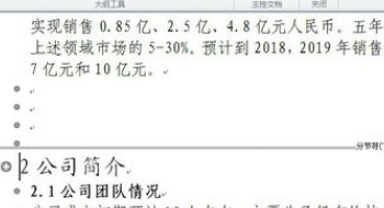 3、点击“大纲视图后”,在文档中找到分页符的位置。大纲视图的好处就是可以看到很多隐藏的符号。
