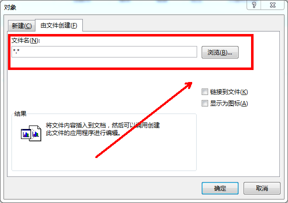 5.然后可以选择显示为图标,也可以选择链接到文件,根据个人需要进行选择,如下图所示;