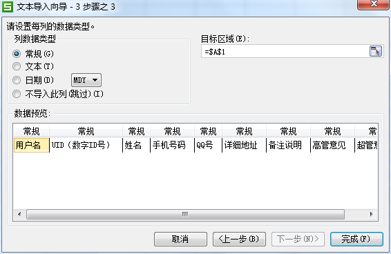 6、设置输出数据的格式,一般不需要进行任何设置,选择常规即可,点击“完成”。