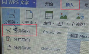 Word中添加分页符: