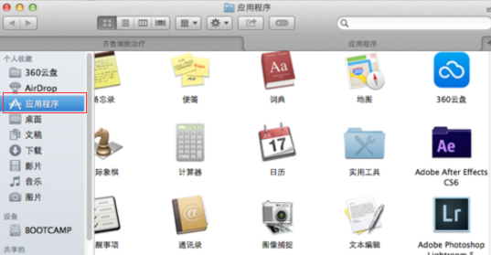 打开“访达”页面,点击左边的“应用程序”,进入应用界面。