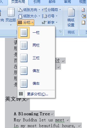 3,分栏那里设置有一栏到三栏,还有偏左和偏右,可以根据自己的需要来选择。这里我选择的是三栏。