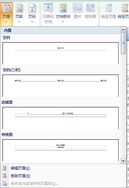 4,点击插入页眉,选择一种样式。这里我选择的是传统型。