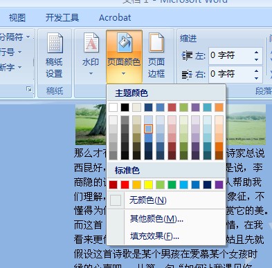 10,设置页面颜色,这里的下拉菜单中有填充效果,可以填充图片。大家可以试试。