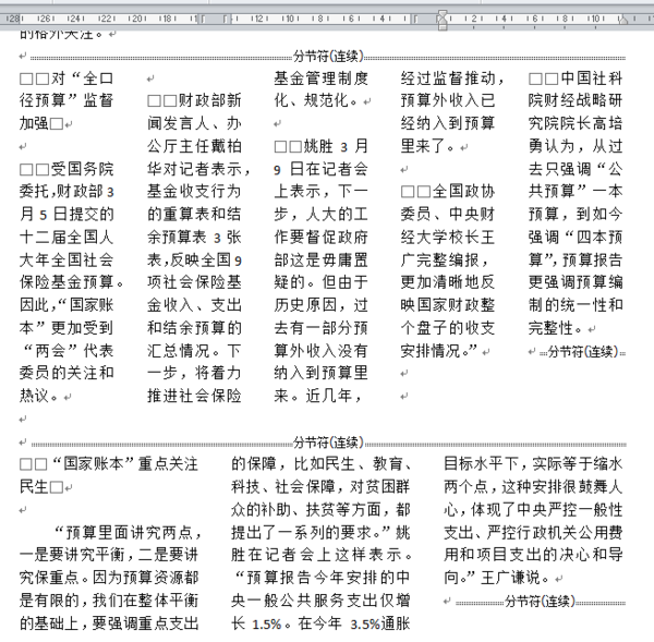 WORD学习排版报纸 现在我在排版人民日报,人民日报里有两部分都是分栏怎么做