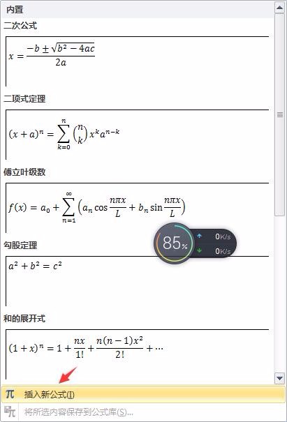 word2010还提供了一些自带的公式,看看有没有能用的上的