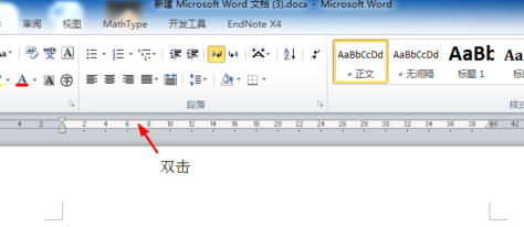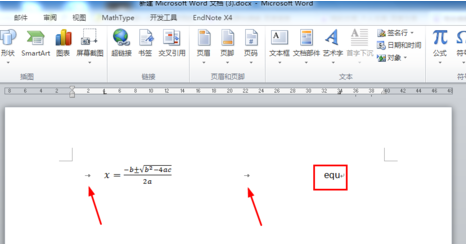 12、返回word主界面,输入两个制表位,如图所示,在两个制表位之间插入公式,末尾输入equ。