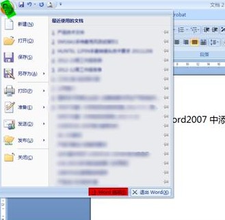 现在开始调用开发工具栏目,点击office2007的图标,如下图