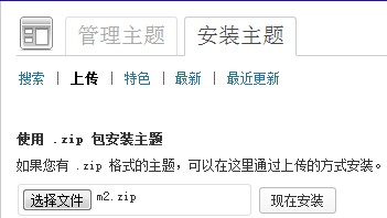 3:点击“搜索”旁边的“上传”,点击选择文件,找到你下载好的WP主题,安装好,记住格式必须是.ZIP的
